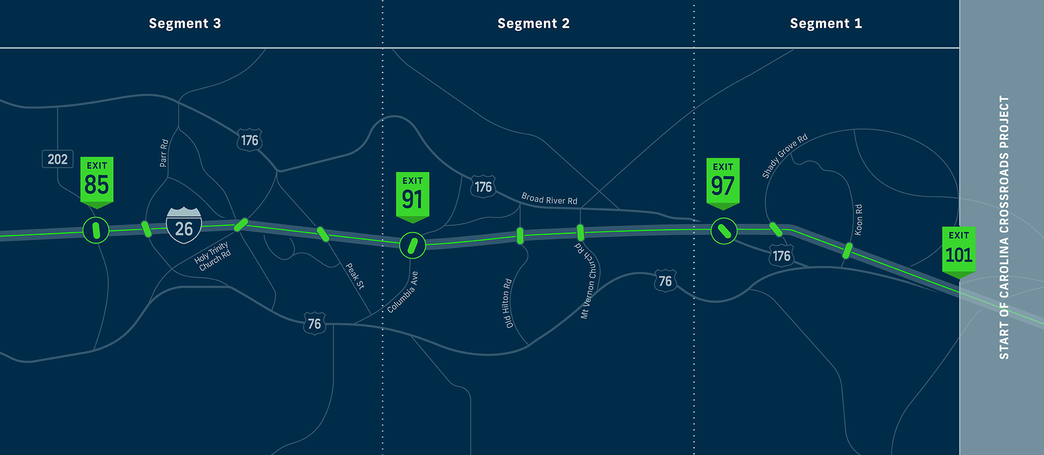 - Widen the I-26 Roadway from approximately Mile Marker 101 to Mile Marker 97