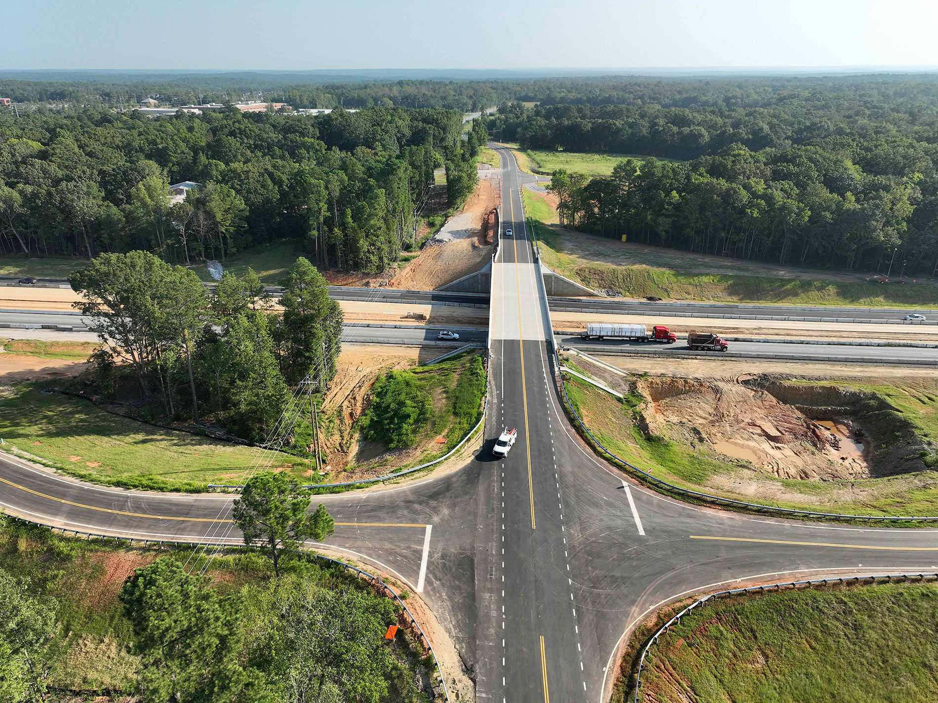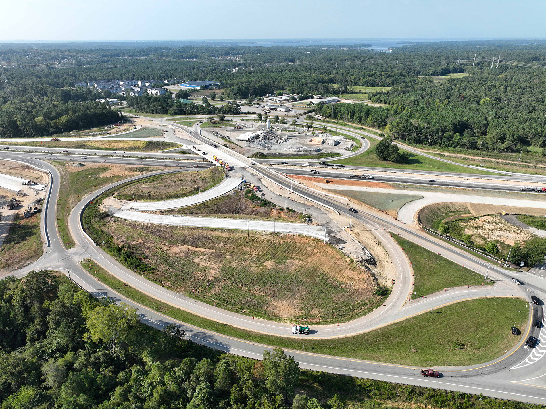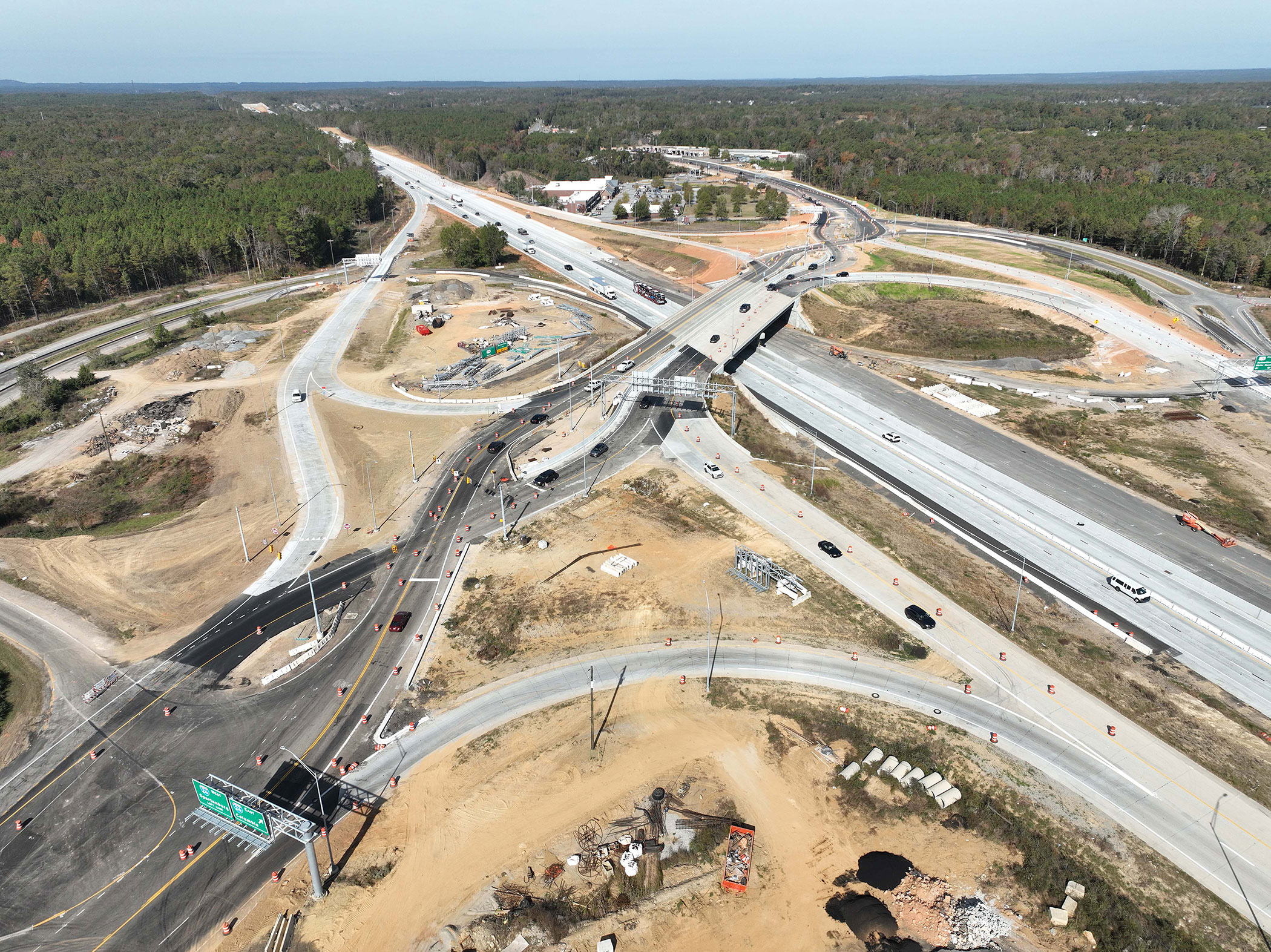 This photo shows the progress on the interchange at Exit 85 in Little Mountain. The new bridge and all four of the new ramp connections have been completed.