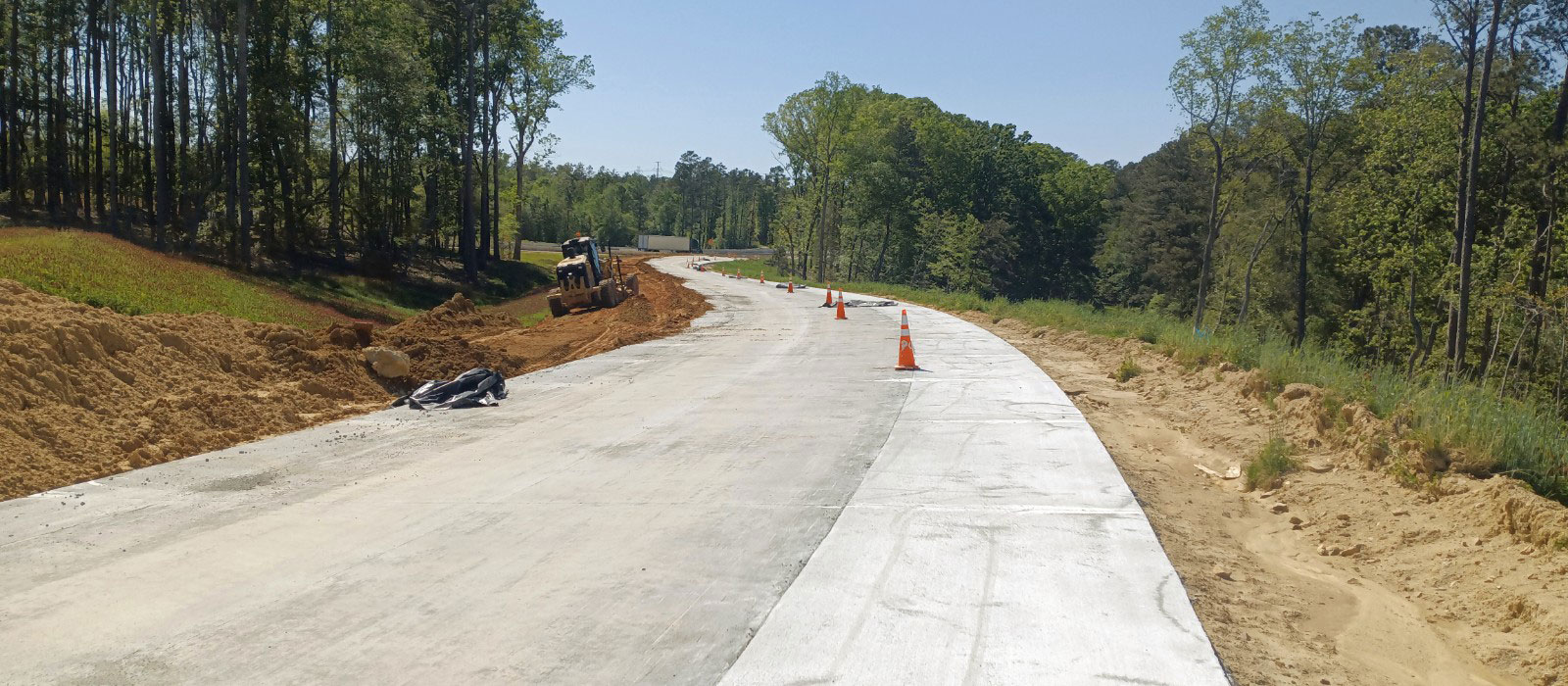New ramps of concrete pavement are included at each of the interchanges. This ramp will be the future I-26 Westbound on-ramp at Exit 91 in Chapin.