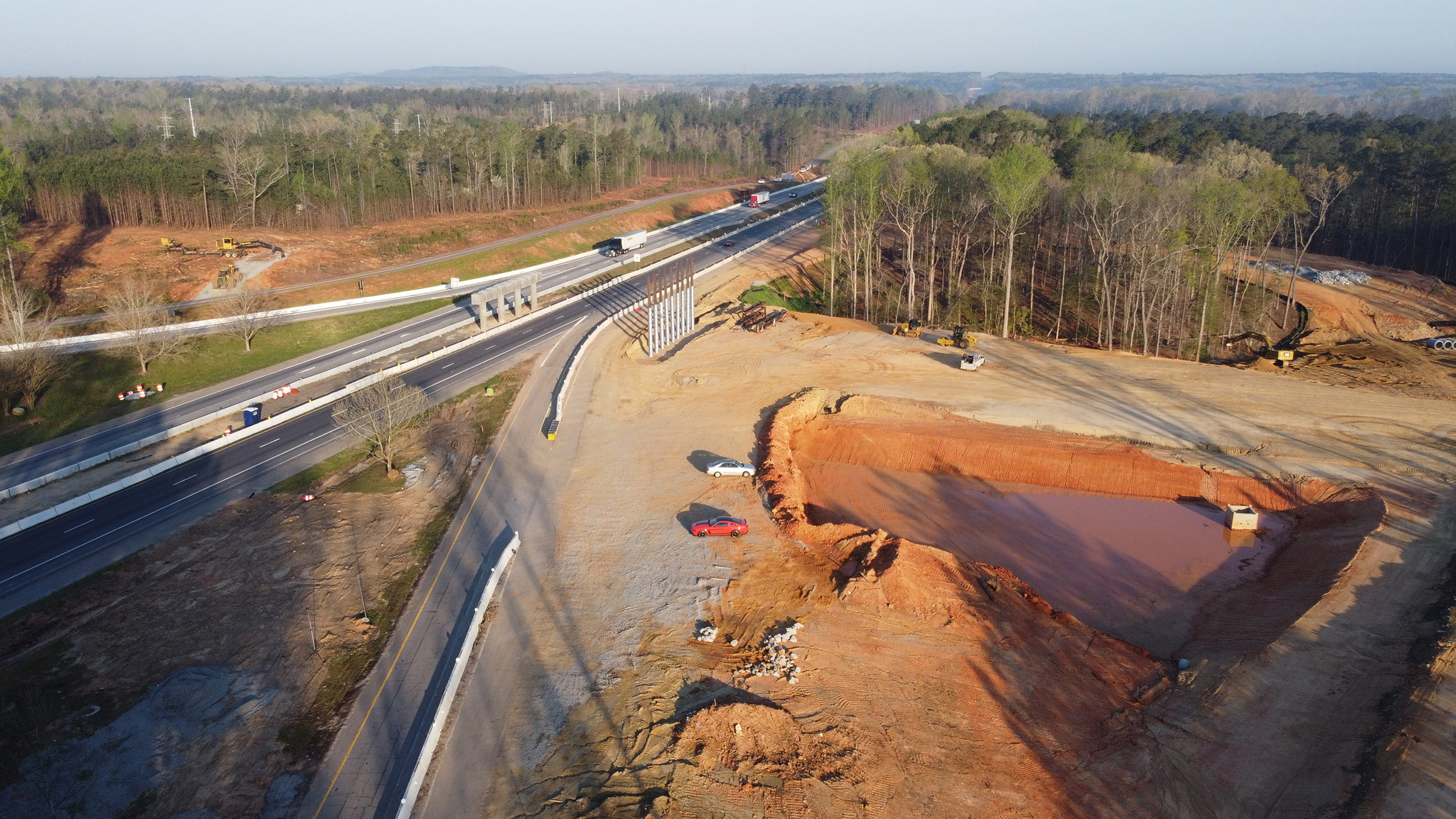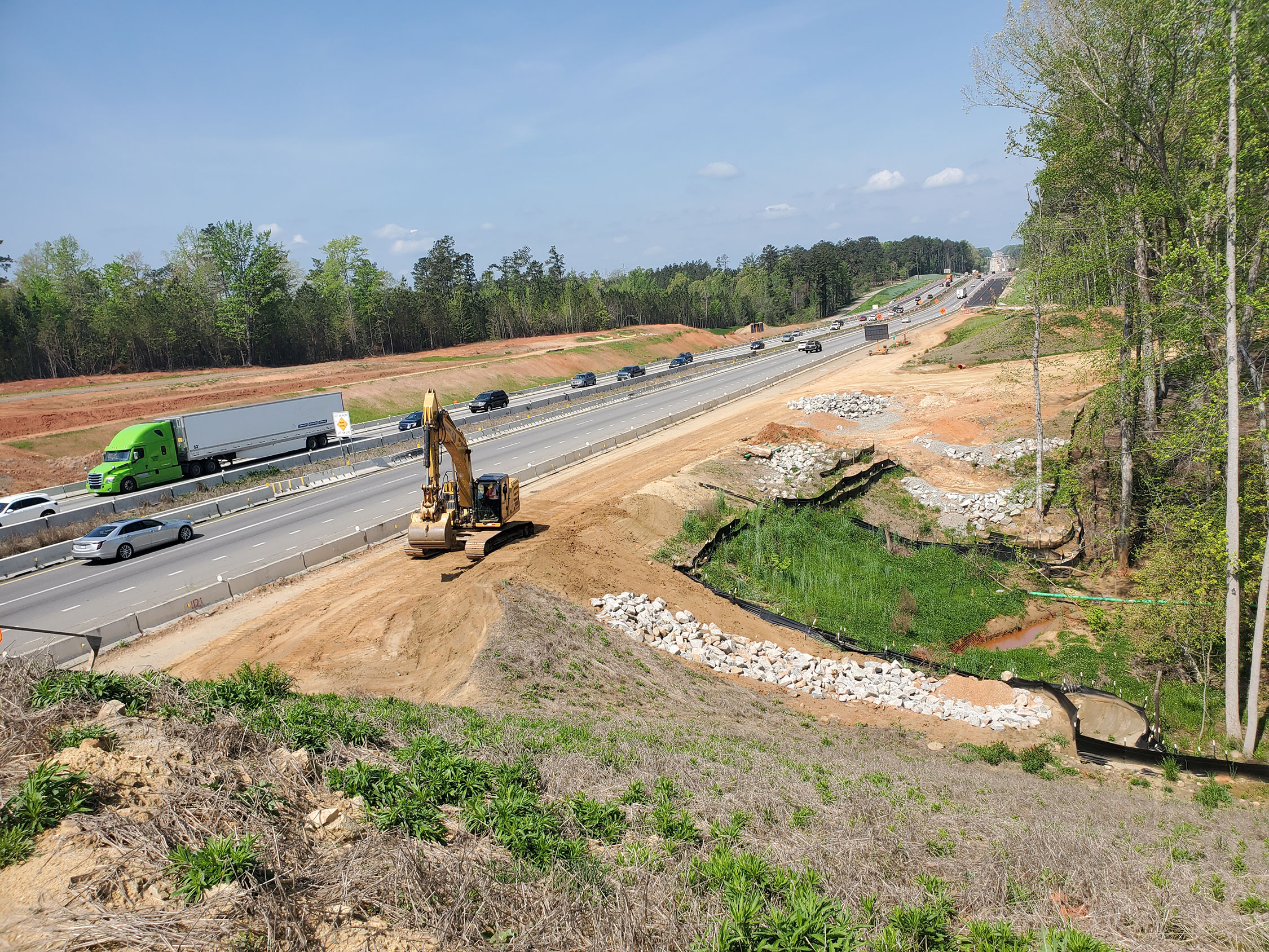 Excavation for the future I-26 Westbound on-ramp at Exit 85/SC-202. Segment 3 of construction has over 1 million cubic yards of excavation and embankment to complete the widening of I-26 and side road improvements.