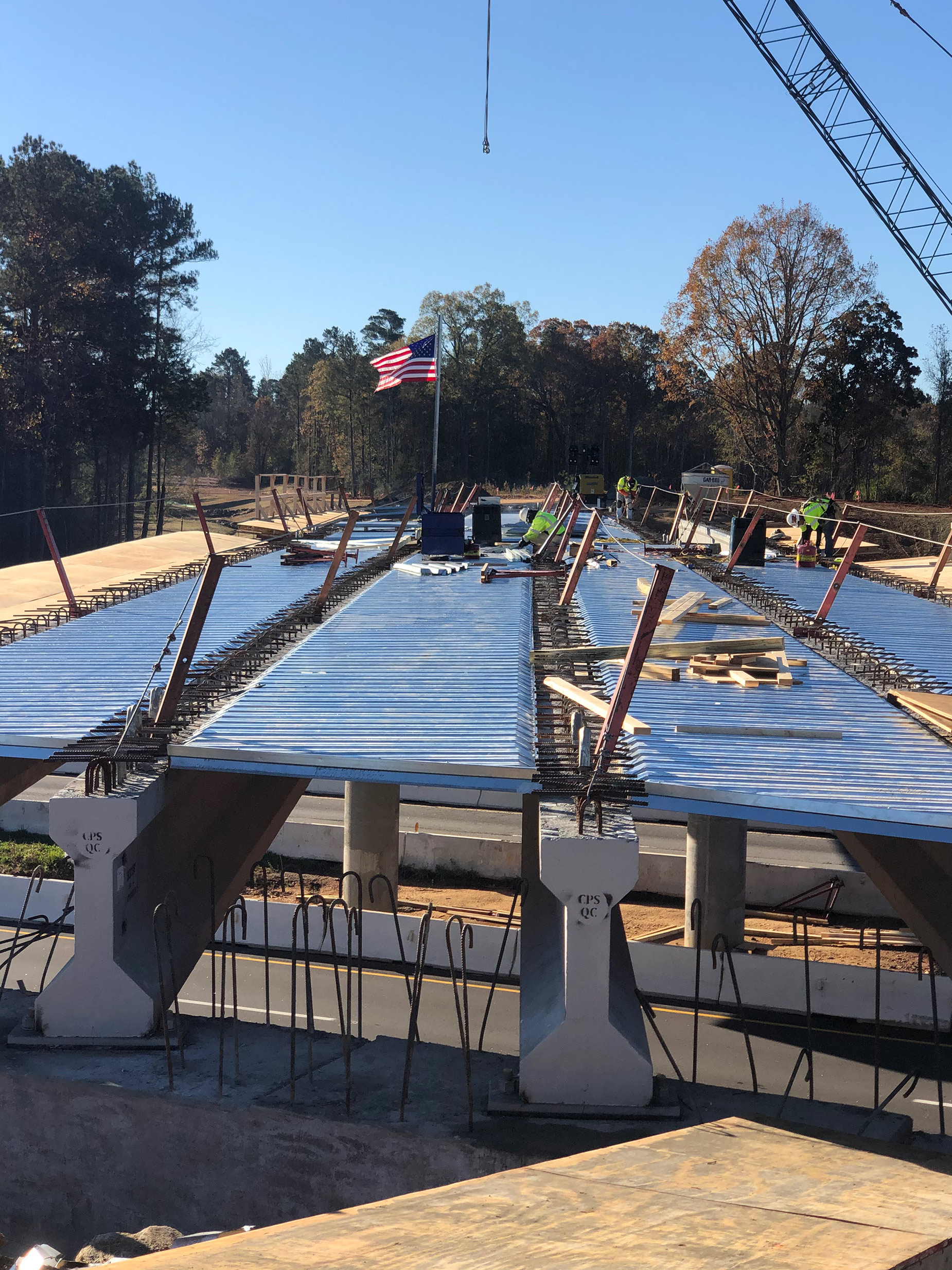 Workers are laying out the cap for the center support of the new overpass at Exit 97 (Broad River Road). The new bridge will be over 94’ wide to accommodate future traffic volumes!