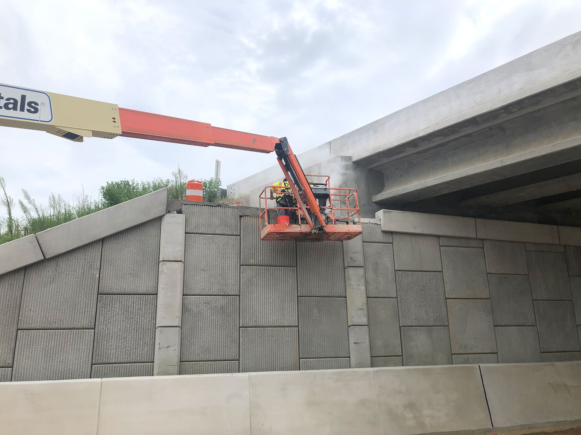 Crews have completed all the retaining walls at the bridges. The last step is to place the cap pieces on this wall.
