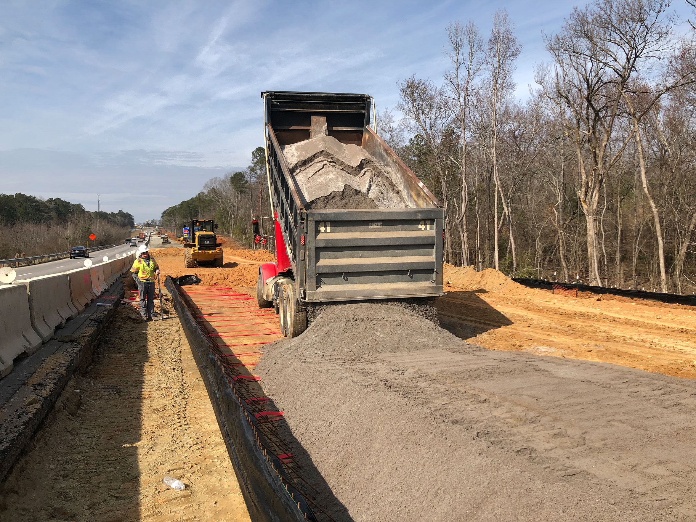 Trucking is a major part of highway construction. Dump trucks are utilized around the clock to haul dirt, asphalt and concrete. SCDOT reminds the public to please use caution while driving through work zones.