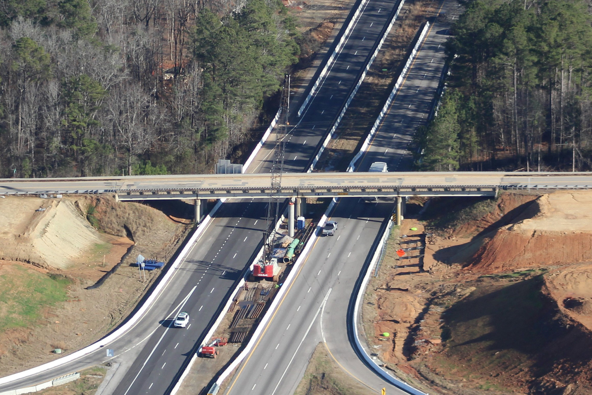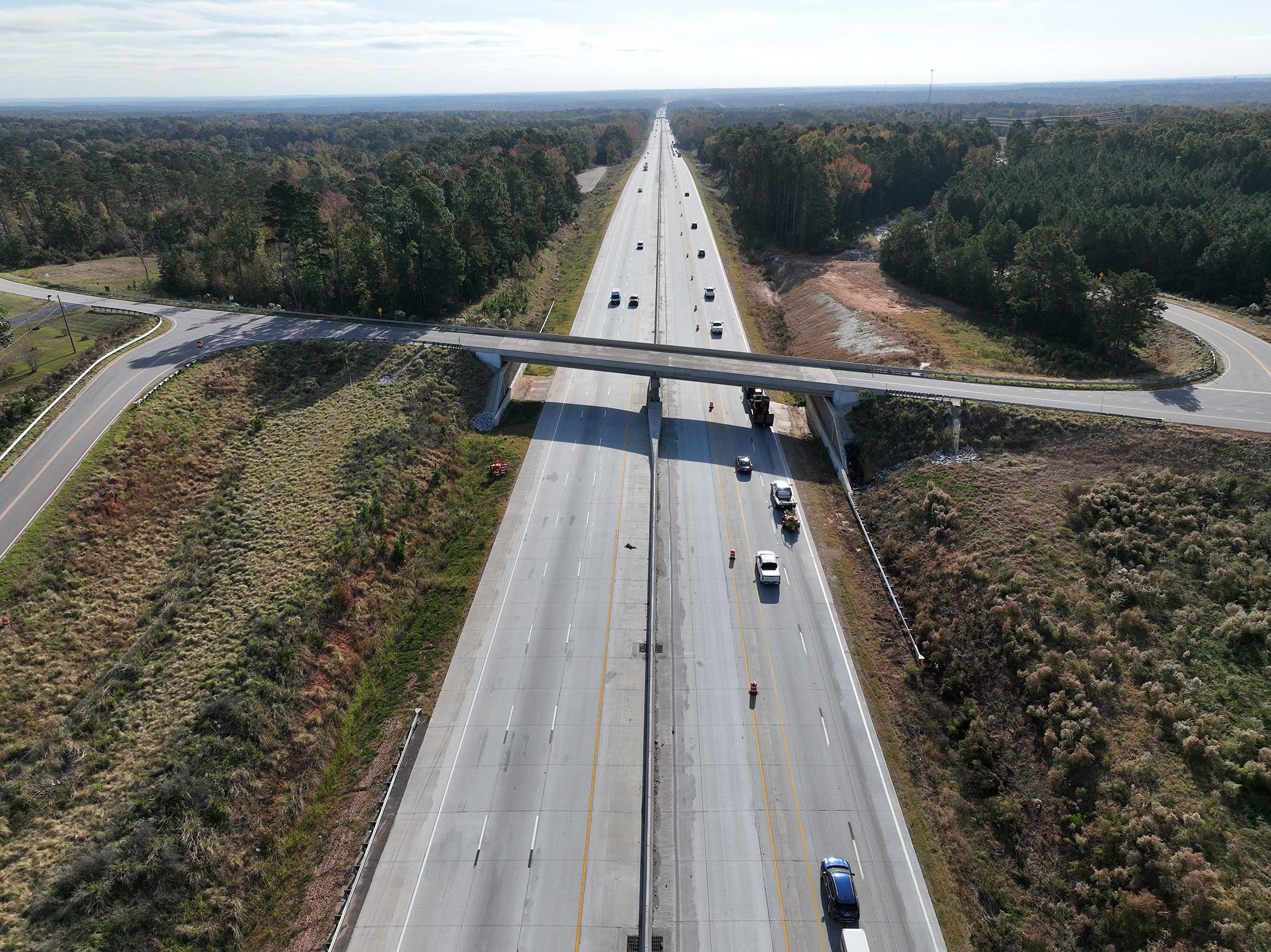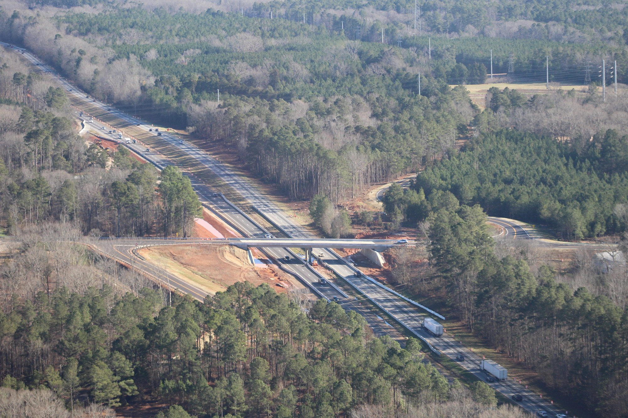 This photo shows the recently opened overpass at Koon Road and the widening of I-26 from 4 to 8 lanes. Traffic is currently located on the two inside lanes, but eventually will have four lanes in each direction from Exit 97 to 101.
