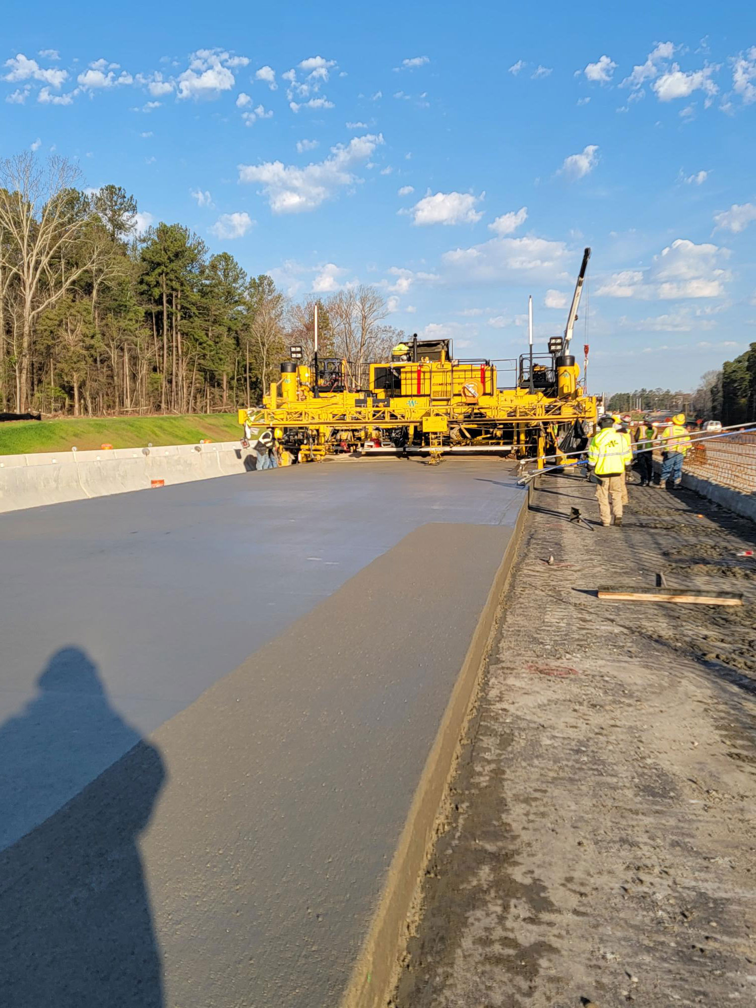 The contractor utilizes a dual lane paver to pave two lanes at a time. On a good day, over 2,000 CY of concrete can be placed. That’s more than 200 dump truck loads!