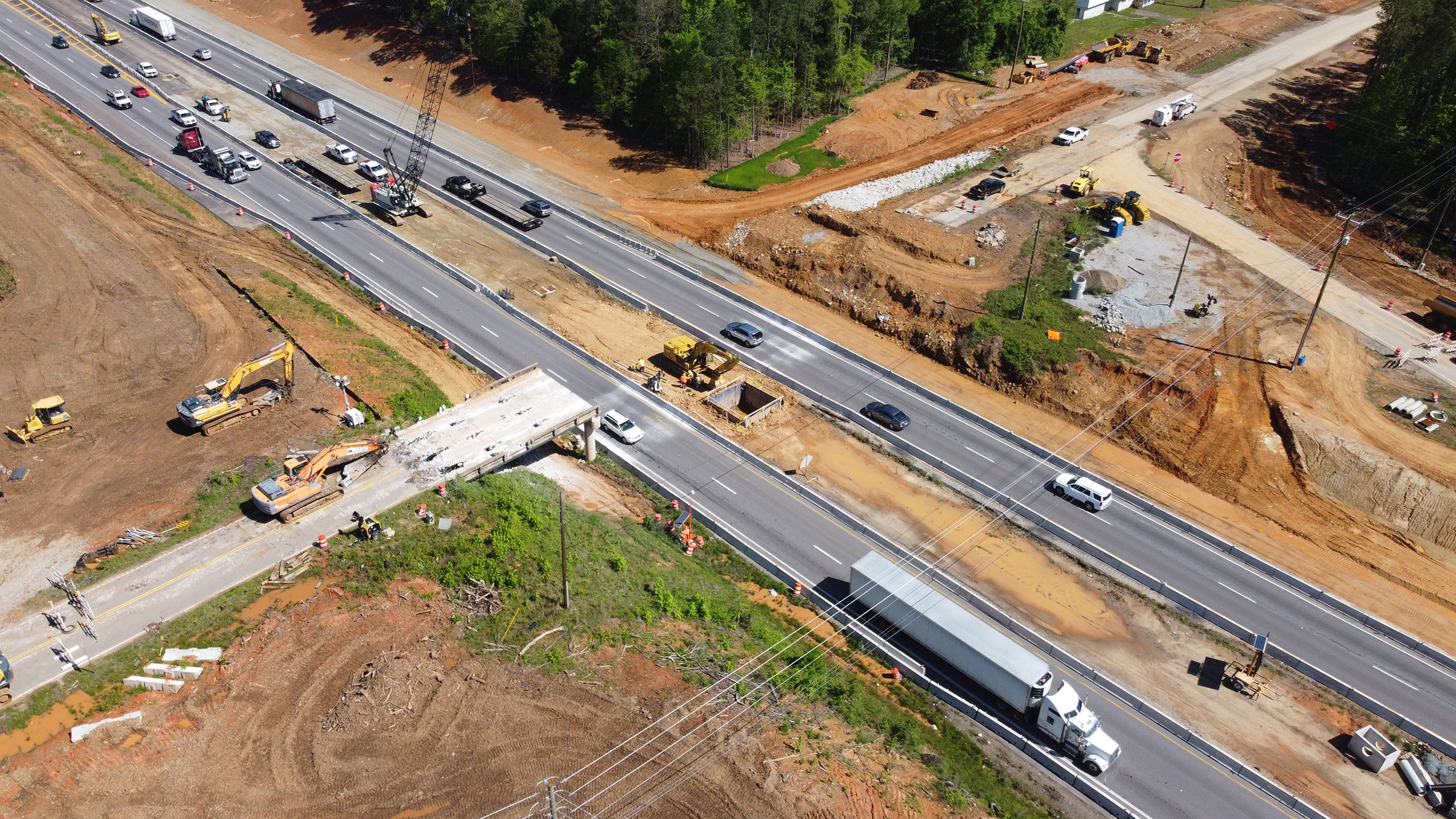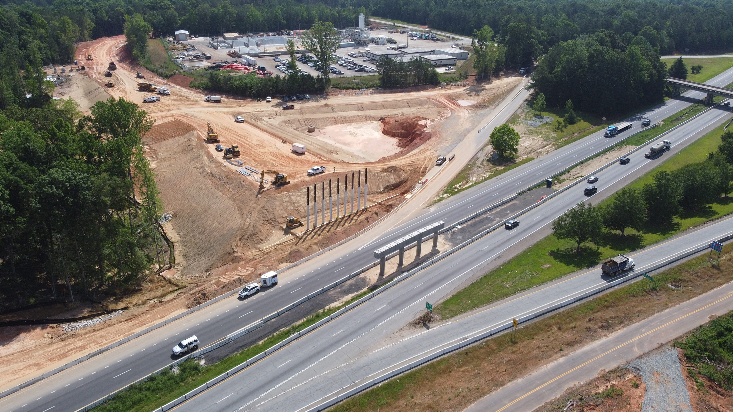 In this photo, the realignment of Columbia Avenue over the I-26 can be seen in the foreground. The old alignment and overpass can be seen in the background. Check out the rendering of the new interchange online at MidlandsConnection_Exit91_Plan-Rendering.pdf (scdotmidlandsconnection.com)