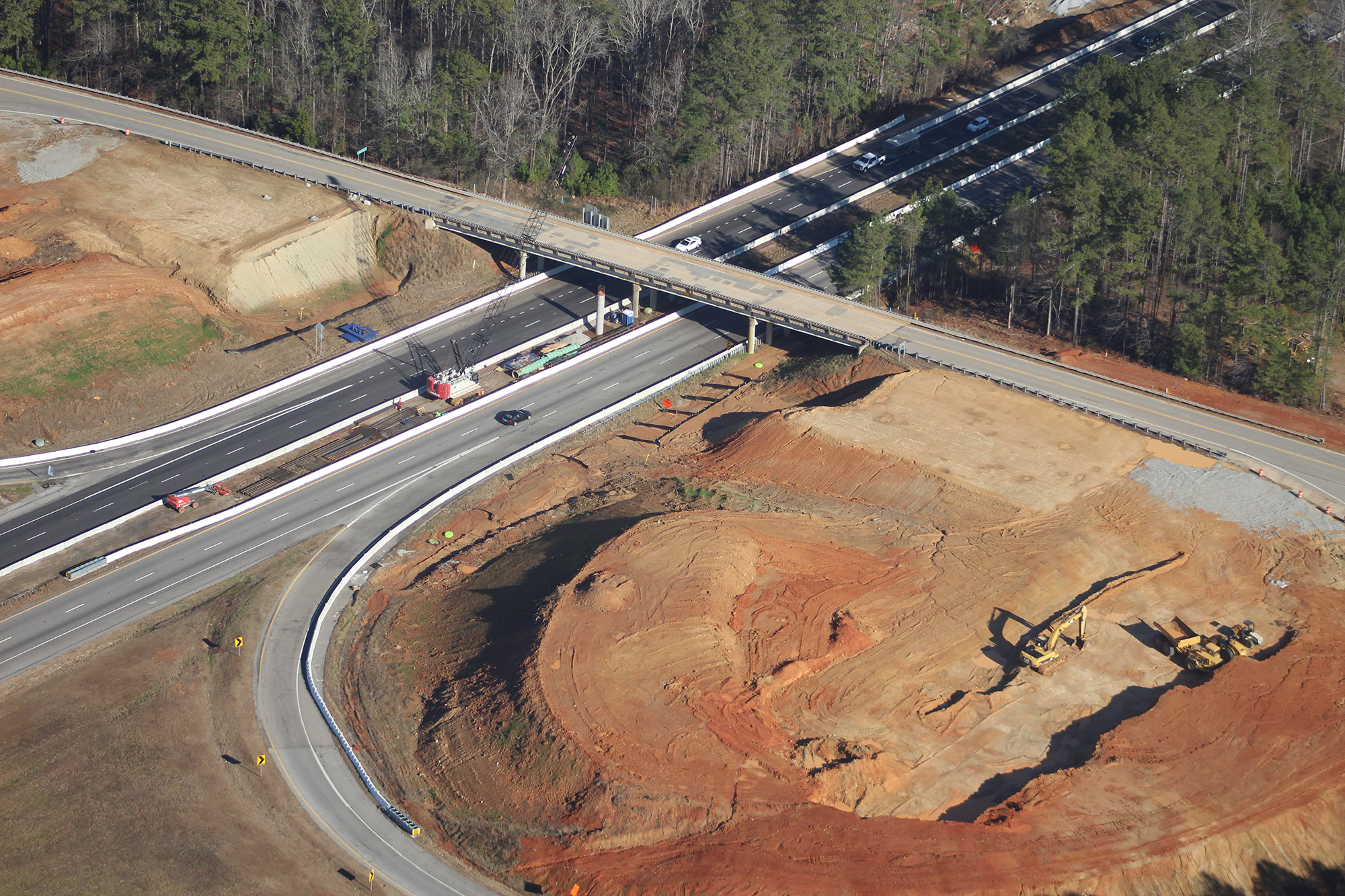 This photo shows the progress on the interchange at Exit 97, Broad River Road. Check out our video of the diverging diamond to see how it will function when complete.
